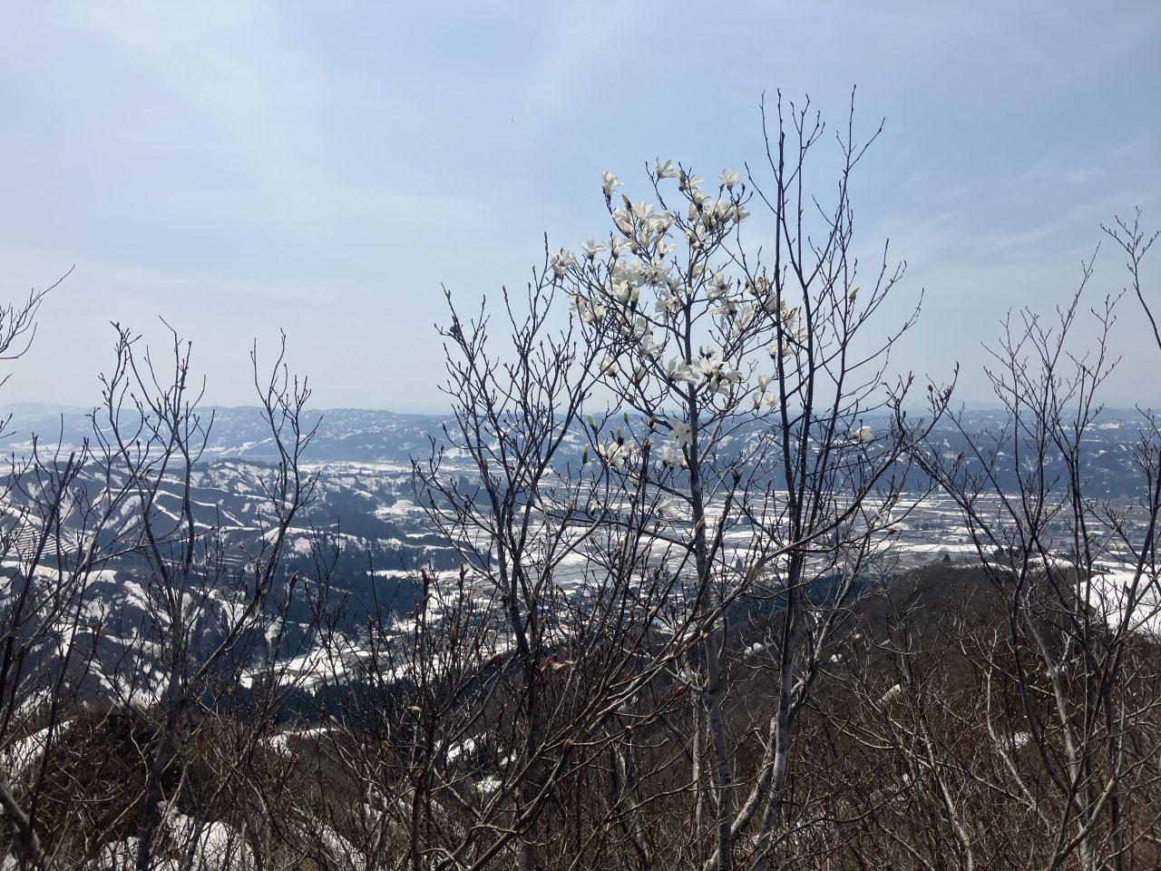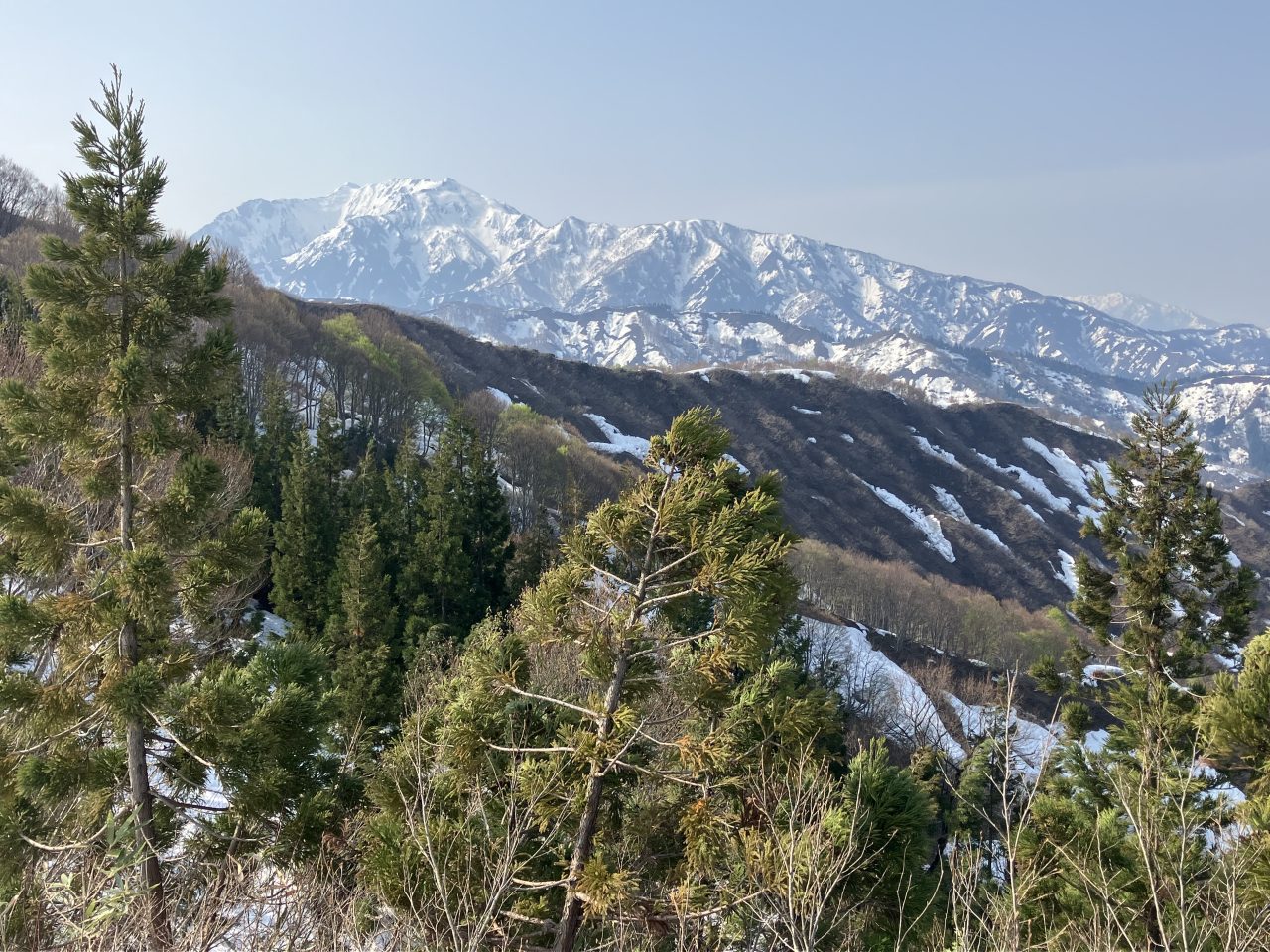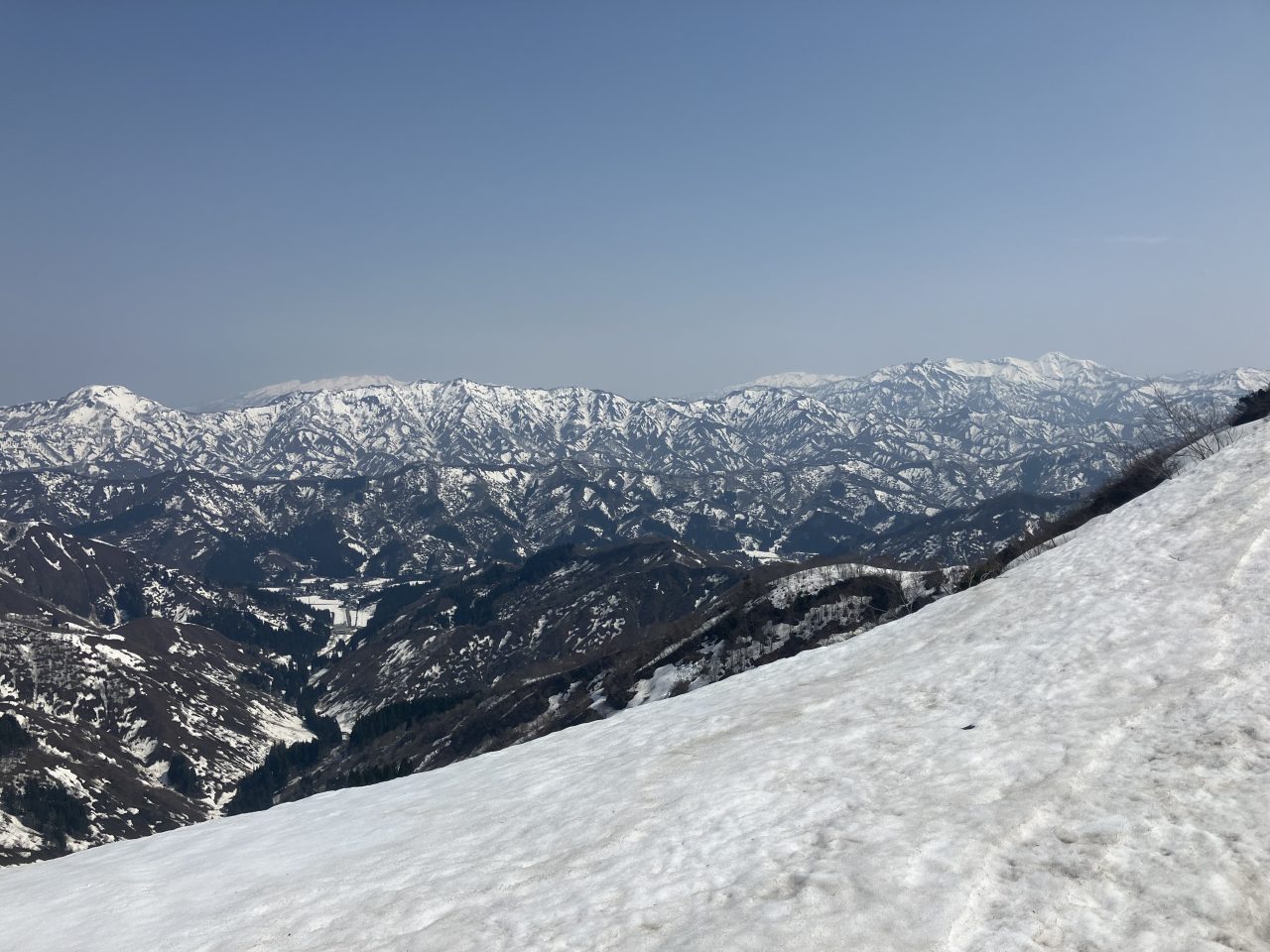 引き続き残雪が多く、楽しい雪山登山だった。鳴倉山の登りも急登でつらい。