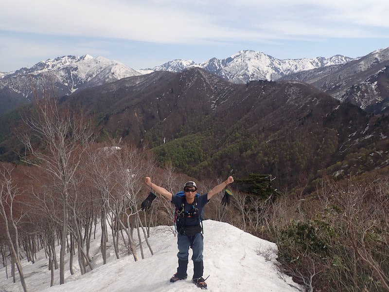 振り返れば越後三山、東を向くとネコブ山がそびえている。
