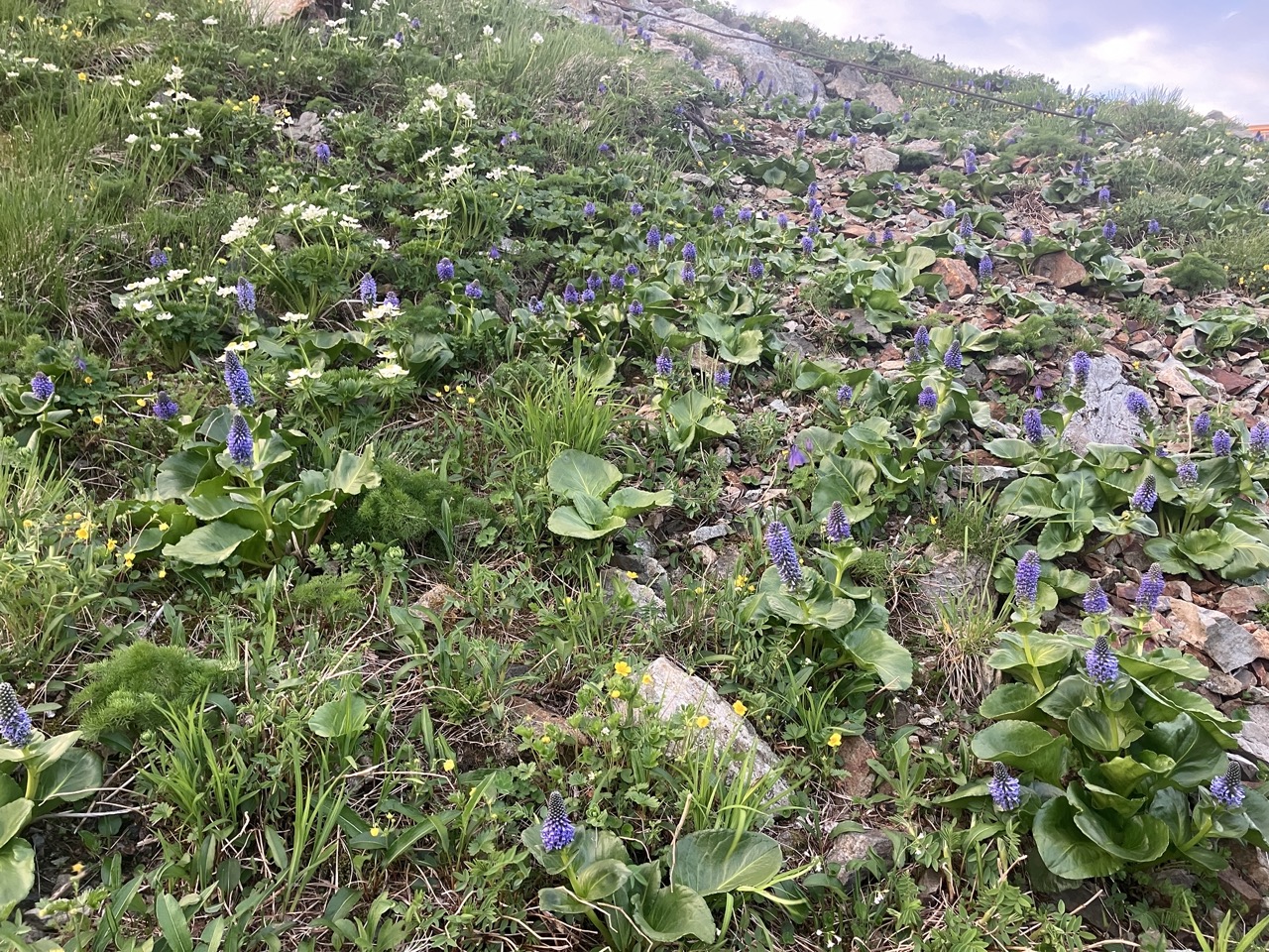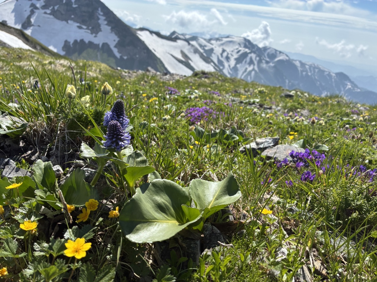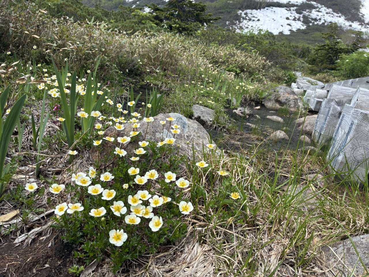 一時はガスに包まれたものの、全体的に天気に恵まれ、展望も素晴らしく、お花もたくさん楽しめた。とても良い山旅だった。