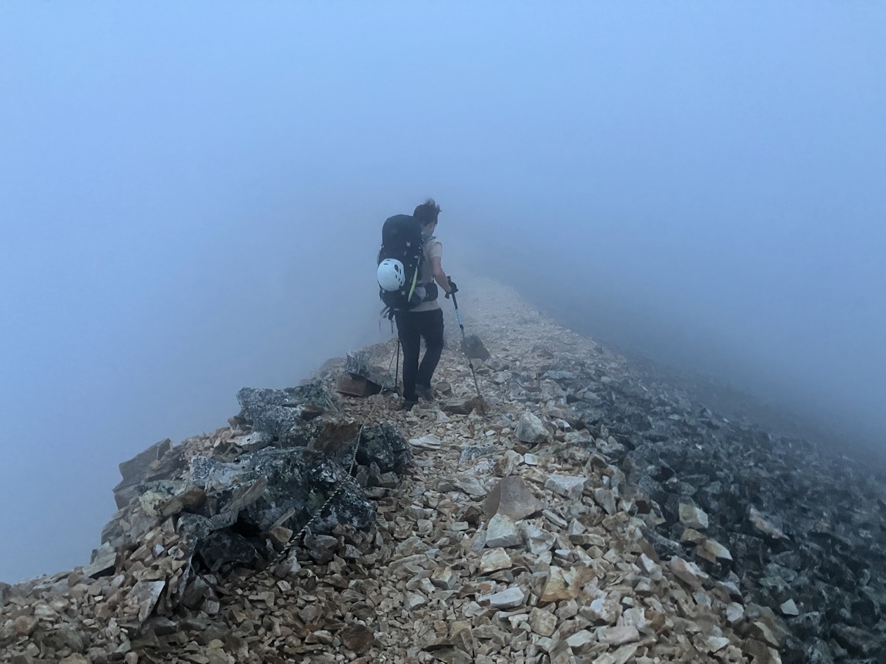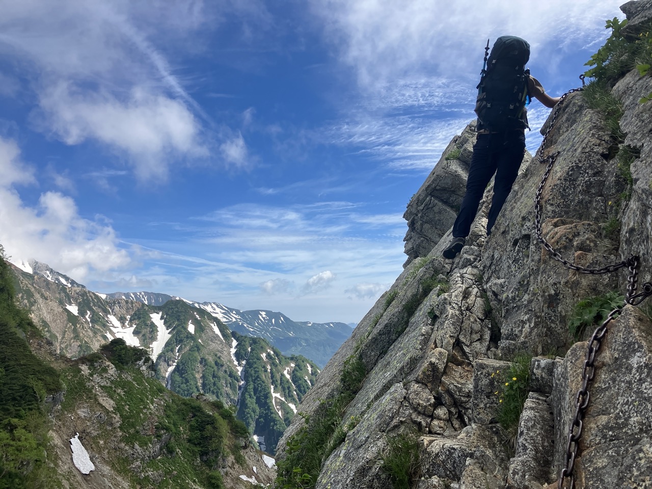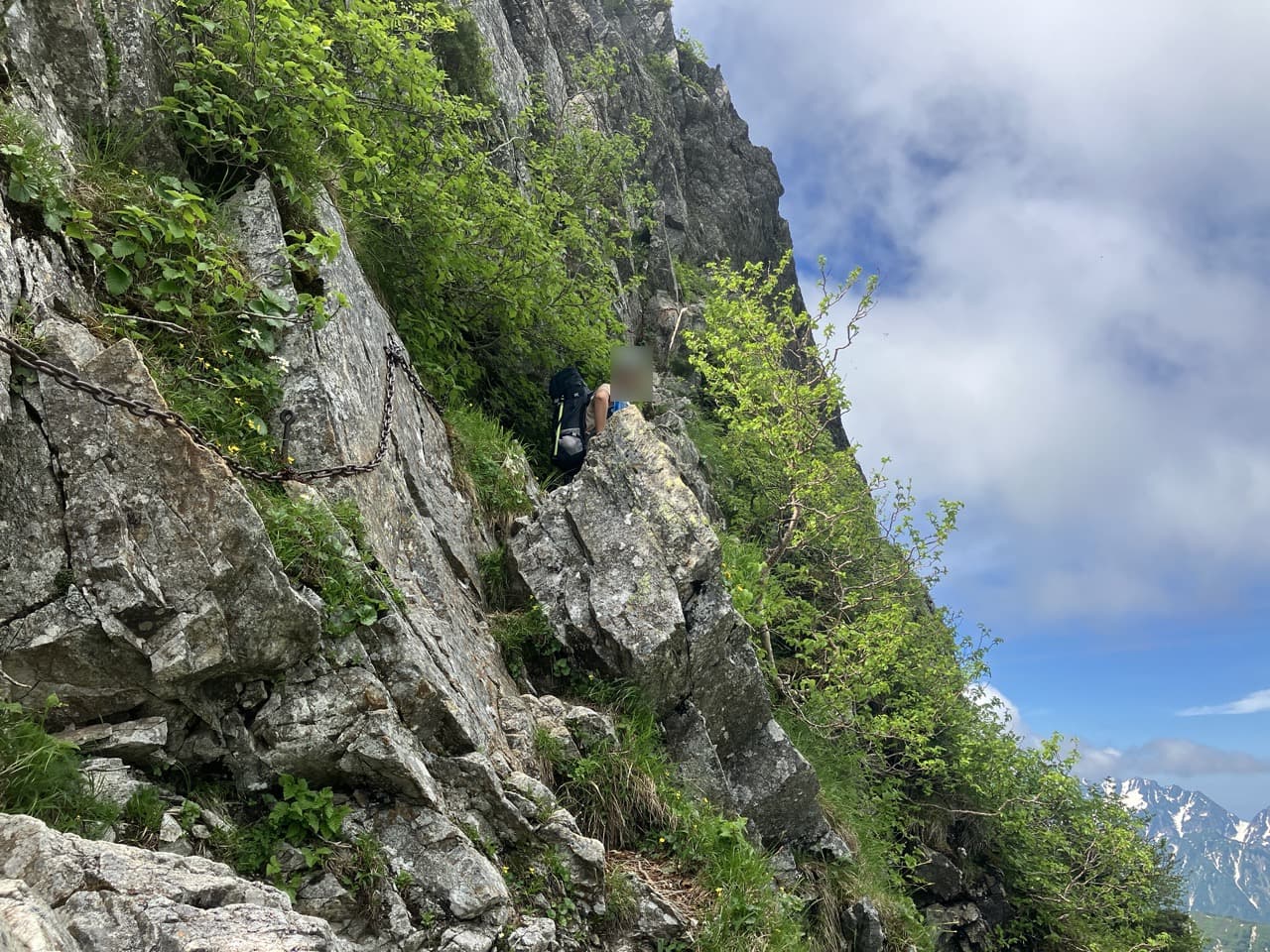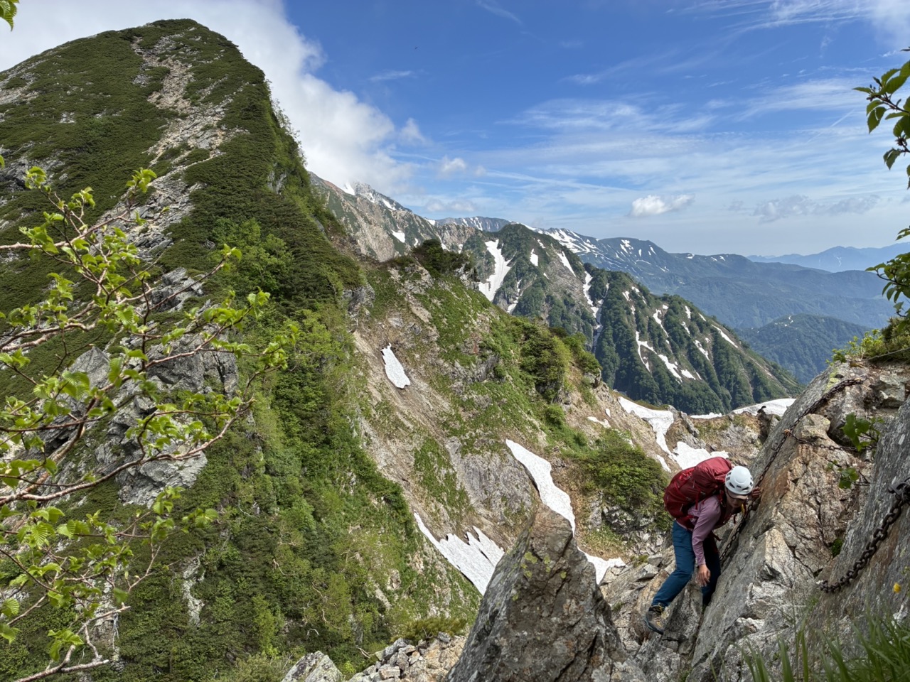 ながーい鎖場を慎重に下る。今日は私たち以外に誰もいないのでのびのびできるが、もし渋滞とかしてたら大変そうだ。待ち時間がかかるし、落石にも気をつけなければいけない。