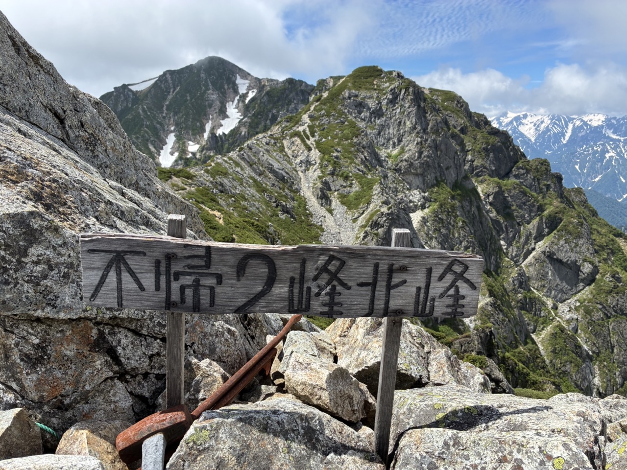 ここから白馬鑓温泉ルートに下山することもできるが、今は登山道崩落のため通行止めのようだった。白馬鑓温泉へ下山するよりも、不帰ノ嶮を縦走した方が簡単かもしれない。(笑)
