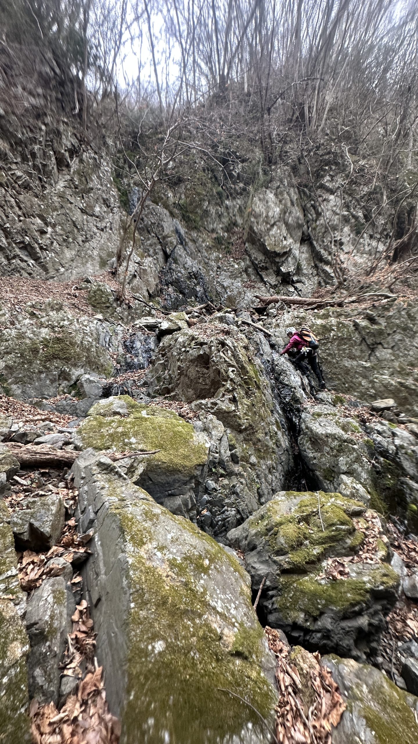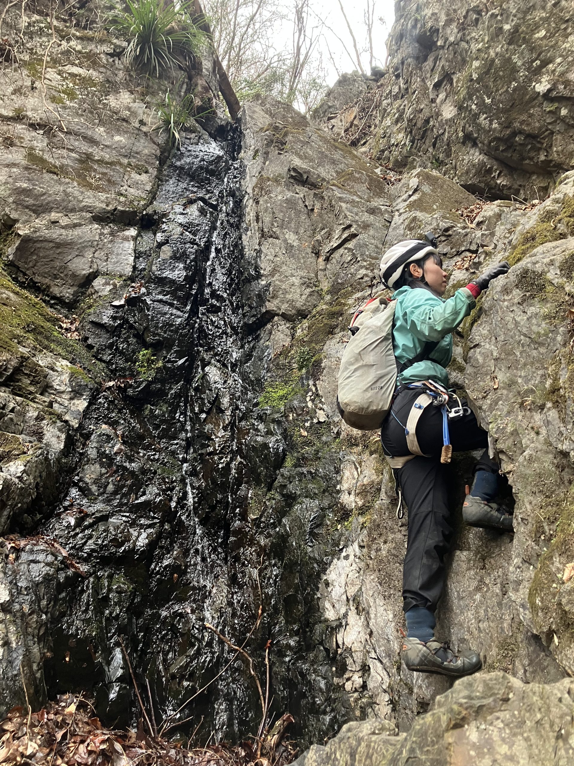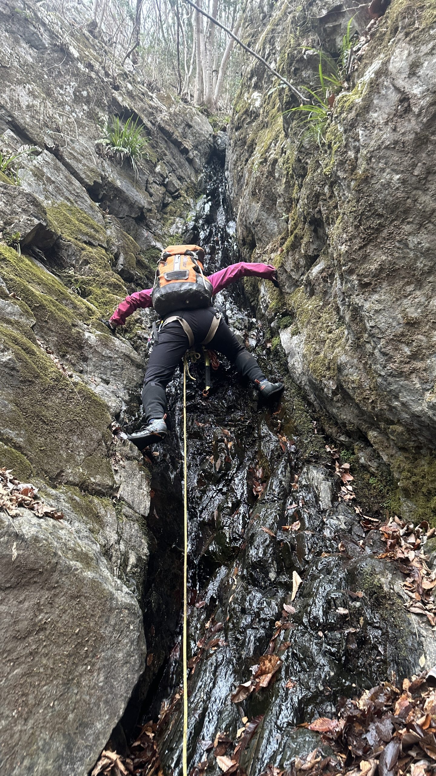 12m滝はホールド豊富で割と登りやすい。高さがあり緊張するのでこまめにカムを決める。